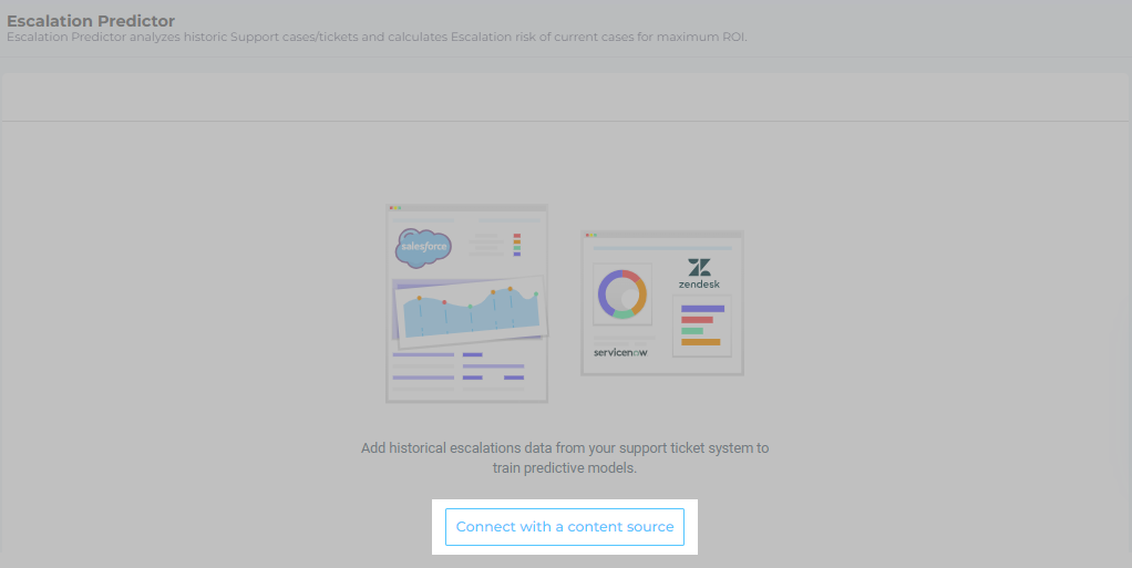 - Escalation Predictor analyzes the historical cases in your system in order to predict escalations. Select a content source.