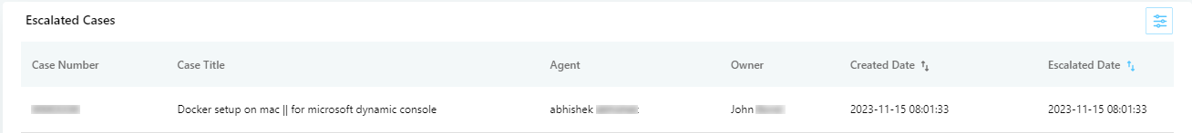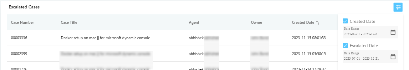 Escalated Date. Select a date range and see the list of cases that were escalated in the selected date range.