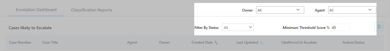 Minimum Threshold Score % allows you to pull up cases with the same or higher value of escalation percentage as mentioned by you.