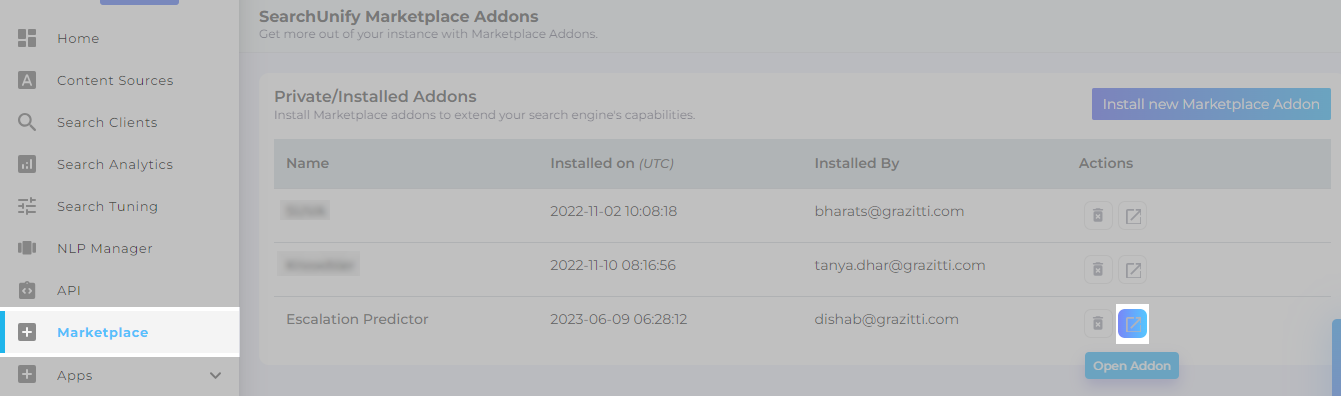 From SearchUnify admin panel, navigate to Marketplace and open Escalation Predictor addon.