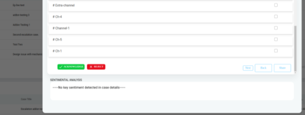 Select a channel from the list of Channels and click Share to forward the title and description of the case in selected Slack channels.