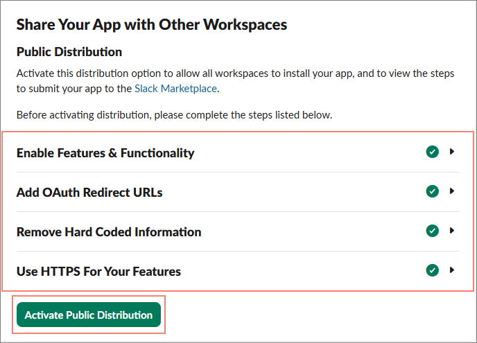Click Activate Public Distribution to distribute the app to the selected workspace.