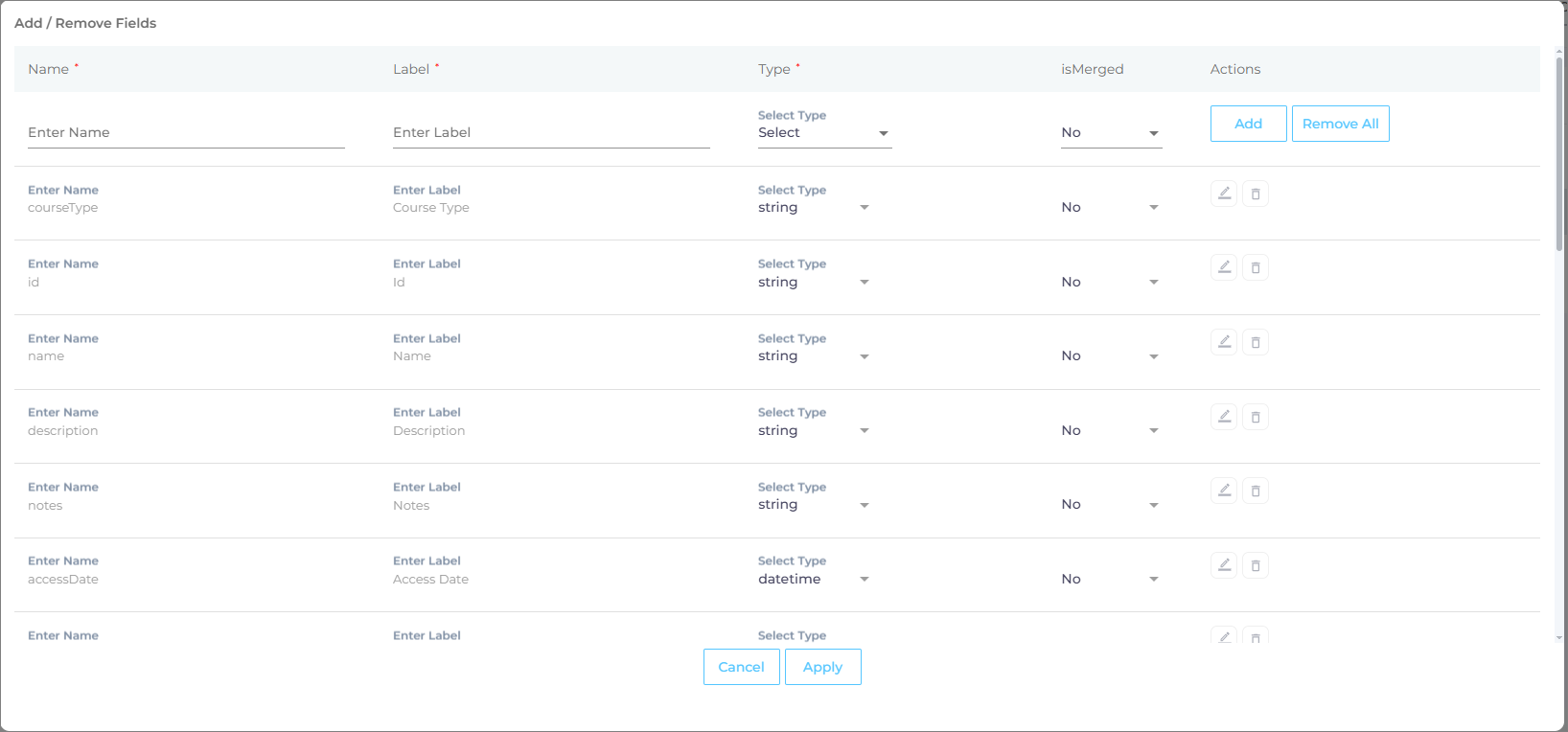 to view the preconfigured fields of the respective objects. Select the fields you want to index in SearchUnify.For reference, the preconfigured fields of the Training object include: Id, Course Type, Name, Description, Notes, Access Date, and others.