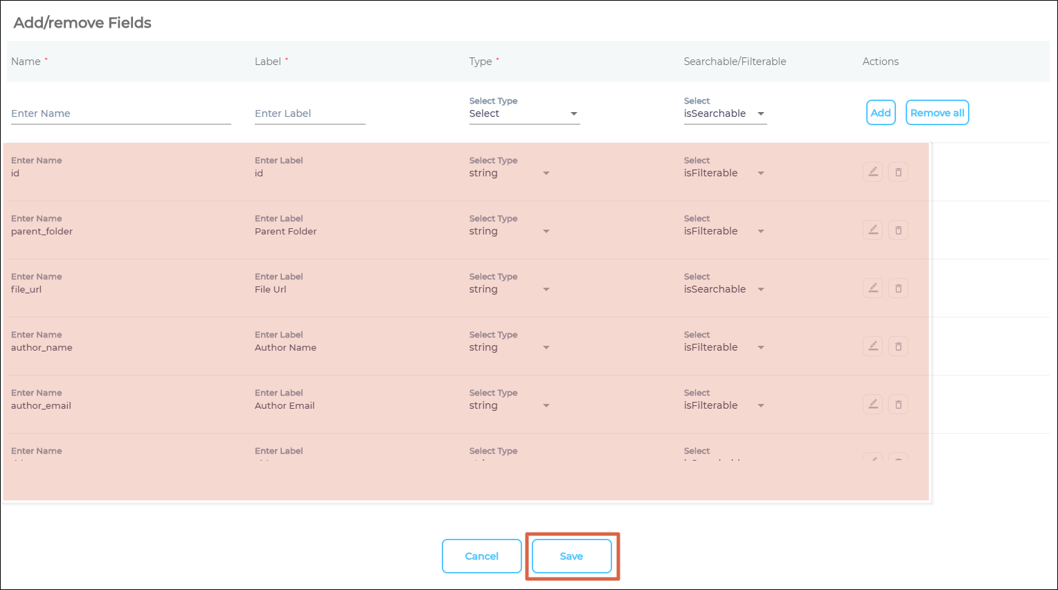 Now, choose either "All" or a specific content source field from the "Enter Name" dropdown. When "All" is selected, any value in the "Find" column is replaced with the corresponding value in the "Replace" column across all content source fields. If a particular field is chosen, the old value is replaced with the new value solely within the selected field.