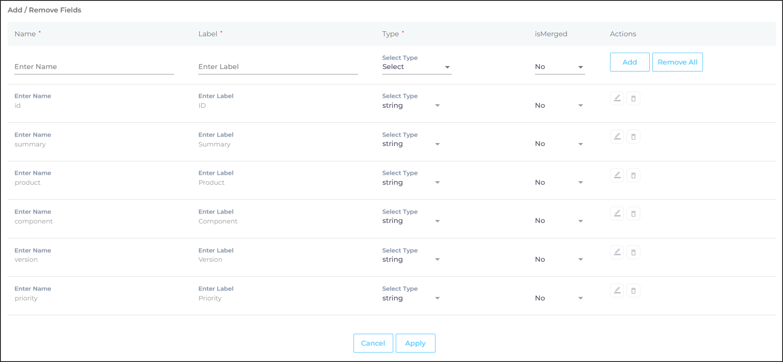 Now, choose either "All" or a specific content source field from the "Enter Name" dropdown. When "All" is selected, any value in the "Find" column is replaced with the corresponding value in the "Replace" column across all content source fields. If a particular field is chosen, the old value is replaced with the new value solely within the selected field.