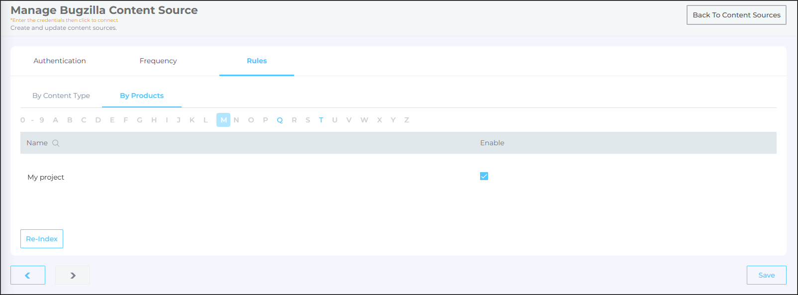 Use the checkbox to select the products you want to index. Once you have selected the products, click Save.