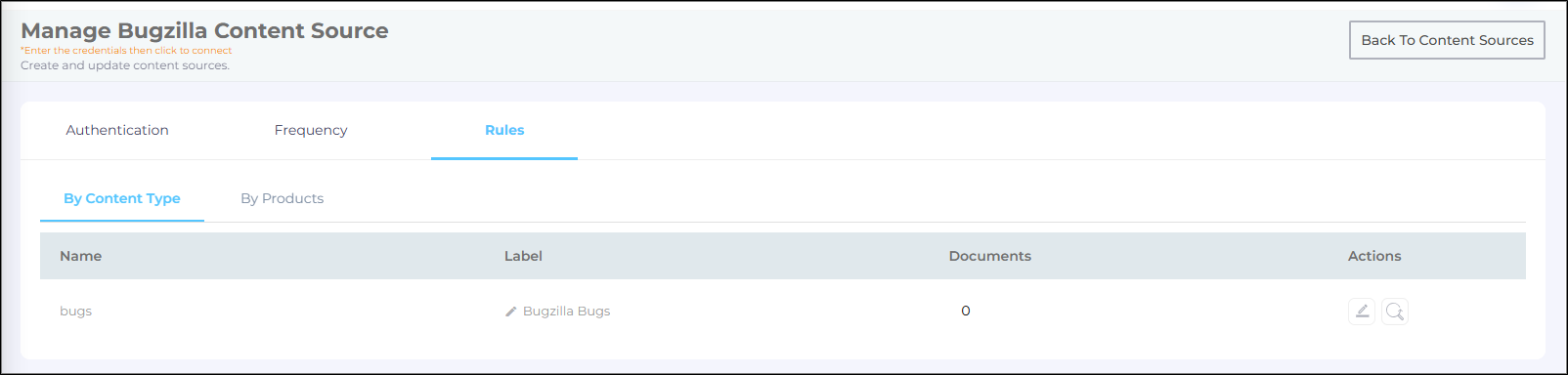 The Bugzilla Content Source is configured successfully. To index your Bugzilla contents, start the crawl. To know more, see Crawl Data from Your Content Source.
