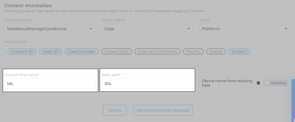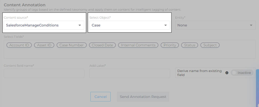 Select the Content Source and Content Object where tagging is going to be applied.