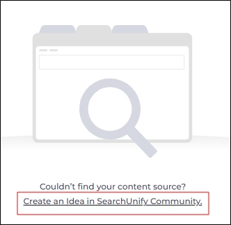 In case a content source is not found, you can suggest it as an idea in the SearchUnify Community. Simply click Create an Idea in SearchUnify Community.