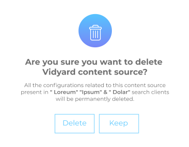 A warning appears, listing the search clients linked to the content source. After reviewing the list, you can either Delete the content source or click Keep to make no changes.