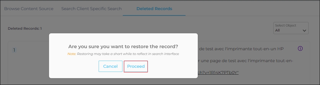When you click Proceed, the restored records are moved to Browse Content Source.