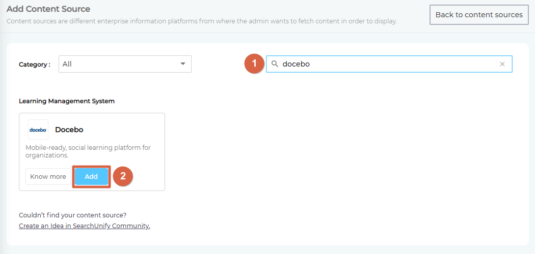 SearchUnify indexes Docebo through its course object. Admins can change the object label and specify which object fields are indexed. The process is explained next.
