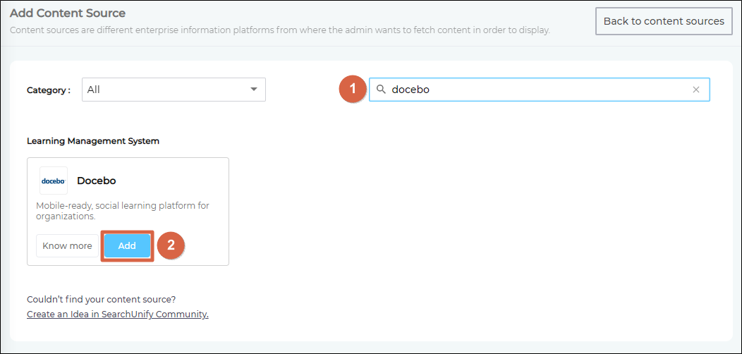 You have successfully added Docebo as a content source in SearchUnify. Perform a manual crawl to start indexing data in SearchUnify.
