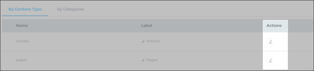 You can see that the article and pages are configured already. Click on the edit button from the Actions column to view or edit the fields for content types.