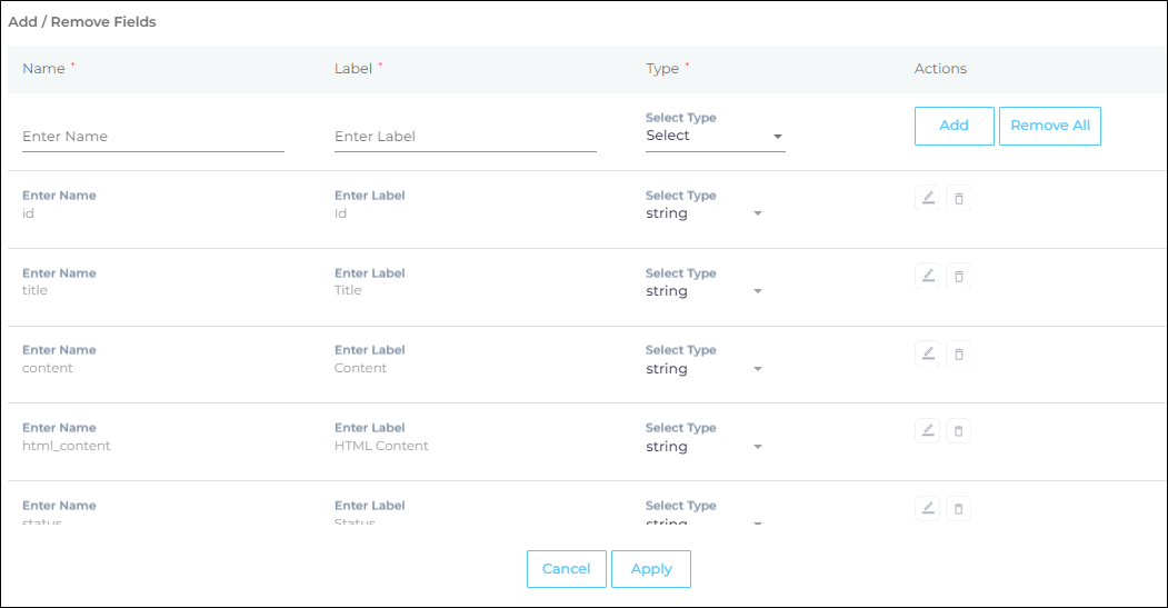 It is not recommended for users to edit or delete any field that is already added. NOTE: No custom fields can be added for crawling.
