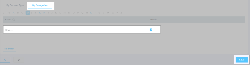 Use the checkbox to pick the selected categories for indexing. Once you have selected the categories, click Save.