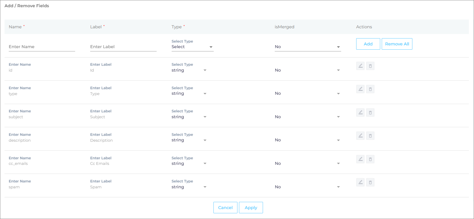 Click EDIT to view the preconfigured fields of the respective objects. Select the fields you want to index in SearchUnify.
