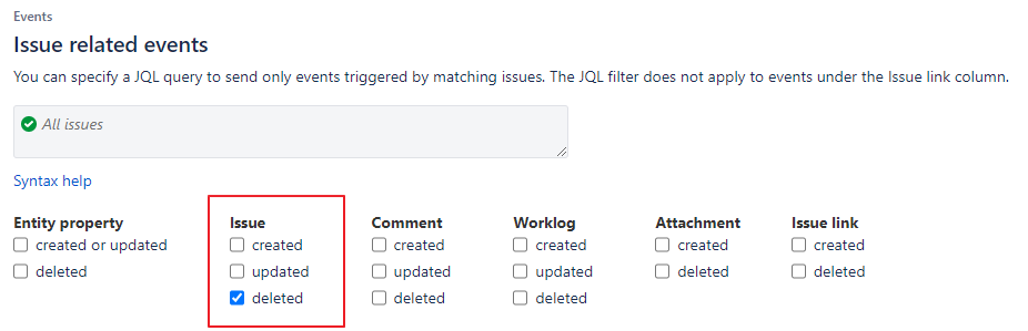 A Jira WebHook is a callback over HTTP used to notify web applications when a specific event occurs in Jira. Because Jira doesn't provide APIs for deleted issues and projects, users can often find them in the search results. A Jira WebHook solves the problem by enabling event subscription for deleted issues and projects which updates the index each time an issue or project is deleted.