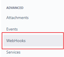 Scroll down in the left-side menu and click WebHooks in Advanced.