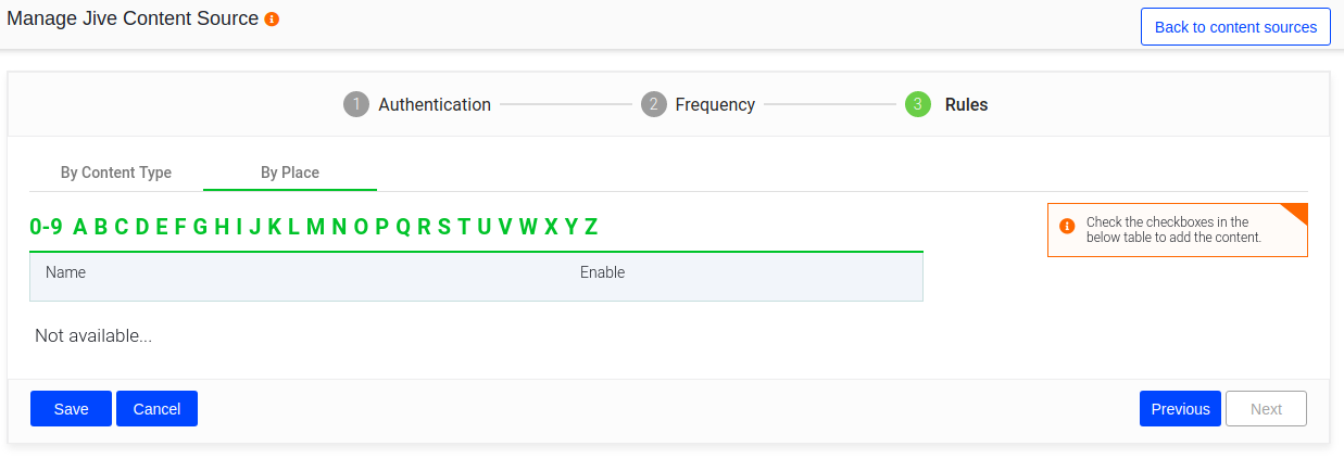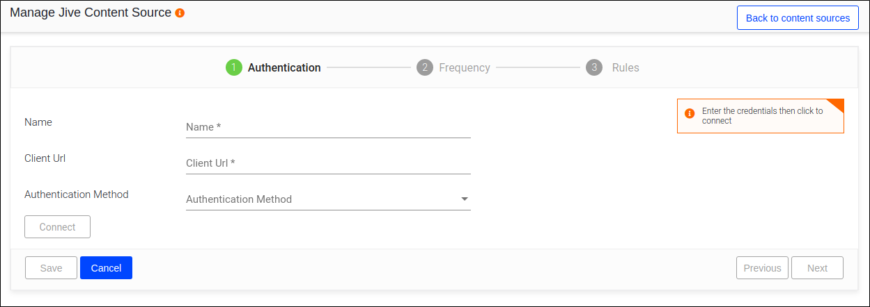 - Step 2 - Click the ‘Add New Content Source’ button to view the content sources