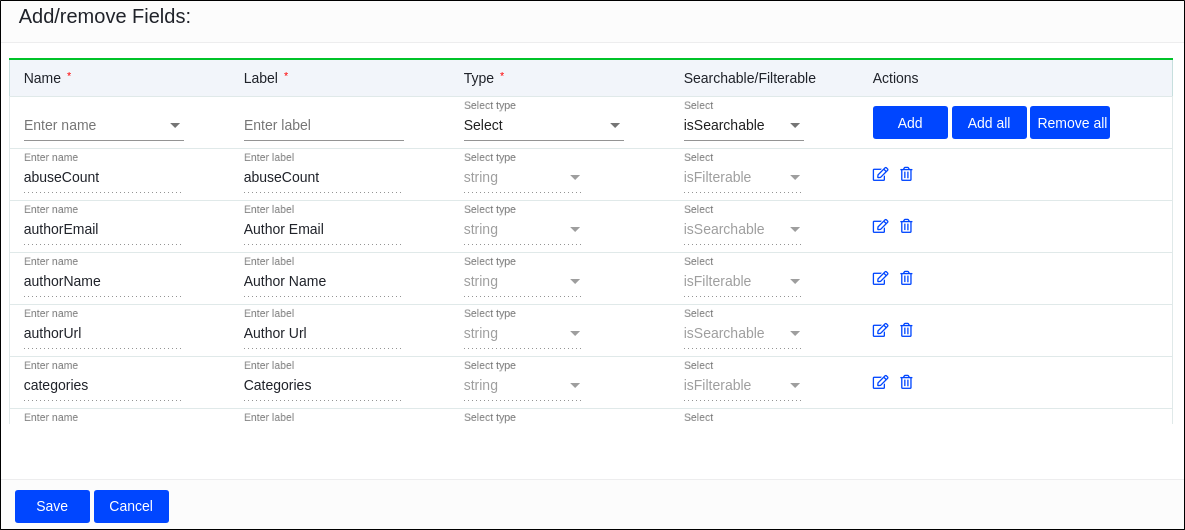- Searchable/Filterable - Select whether you want the field to be searchable (will appear in search results) or filterable (will appear in filters)