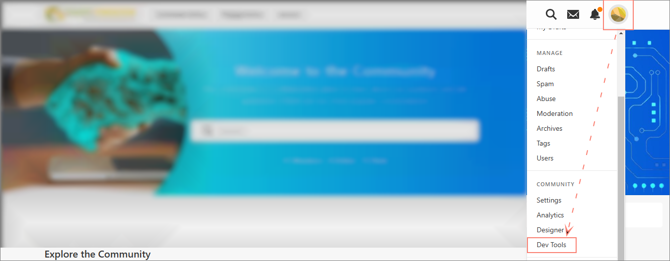 Click on the user profile icon and select Dev Tools.