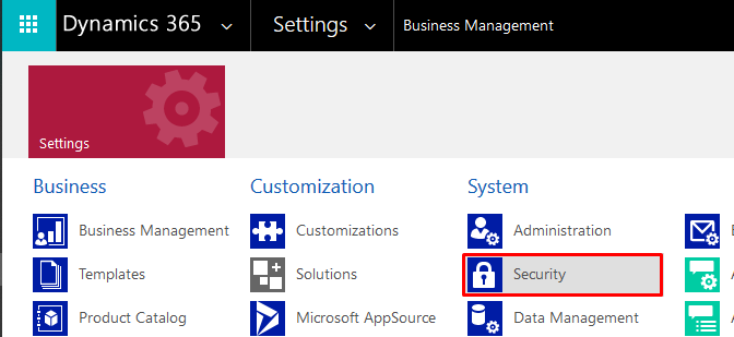 - From the Settings tab, navigate to Security in the System column.