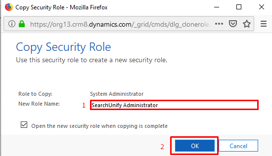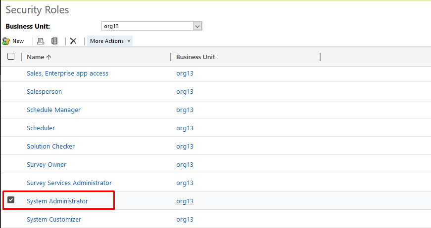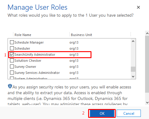 - Scroll down to check the security role that you have created and click OK.