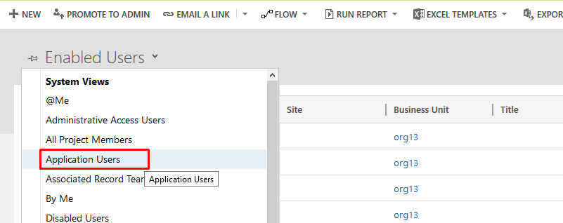 - Select Application Users from the Enabled Users dropdown.