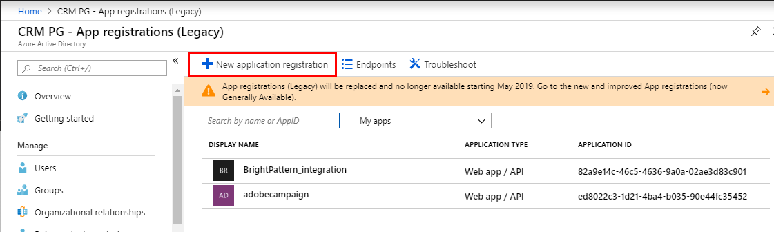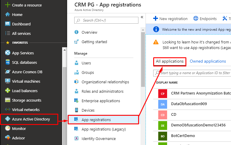 - Click Azure Active Directory, followed by App Registrations, and finally All Applications.