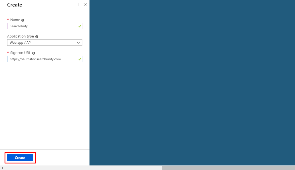 https://oauthsfdc.searchunify.comin Sign-on URL. - Click Create.