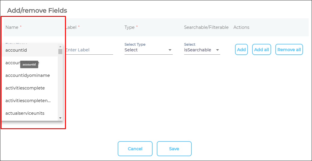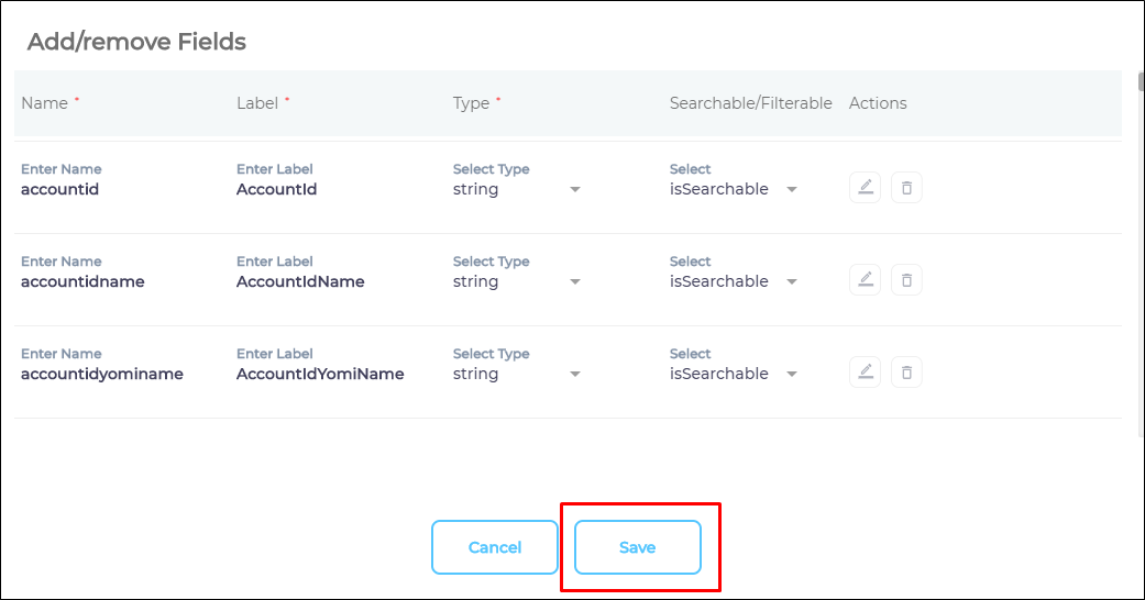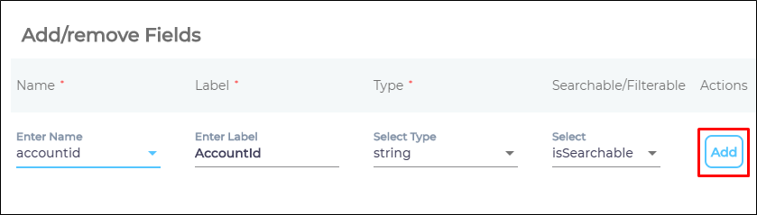 isSearchable: show in search ORisFilterable: use as a facet). You can change these values. - Click Add.
