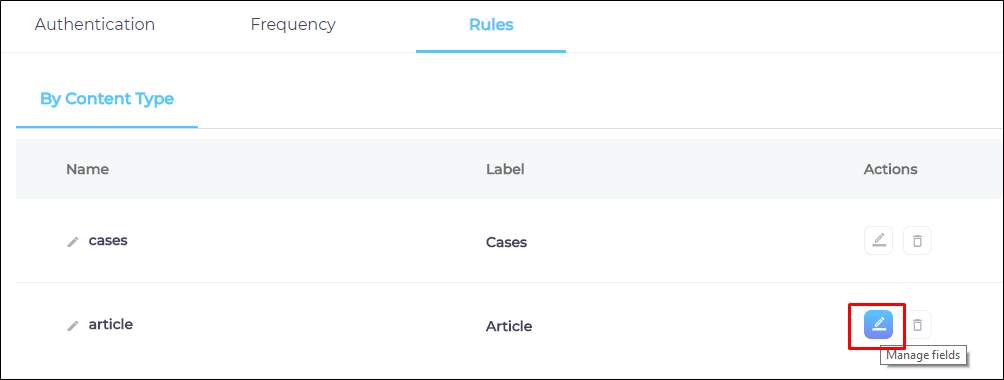 Fig. The "Find and Replace" button on the Rules tab in the Actions column.
