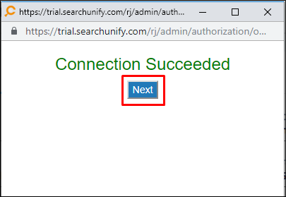 When the Connect button is displayed if the Content Source authentication is successful. Along with the button, a message is displayed There are no crawl errors and the Content Source authentication is valid.