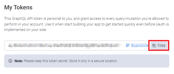 Copy the API token and use it for authenticating Monday.com with SearchUnify.