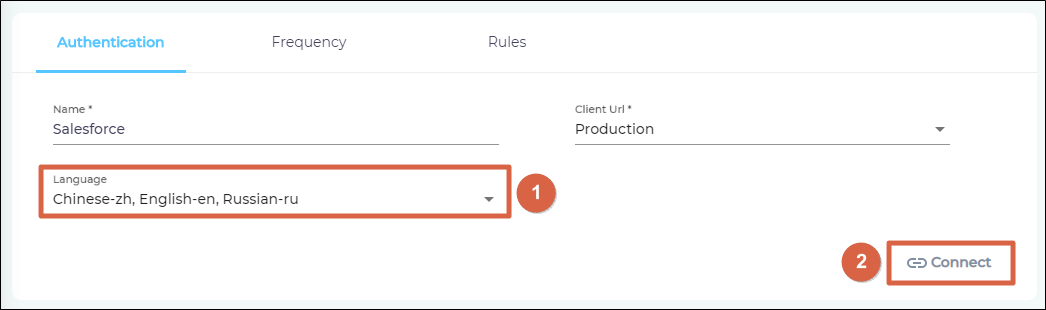 It's important to establish a connection again when the user who did it the first time is deleted from the Salesforce org. Establishing a connection isn't necessary when all that has changed is the user's password on Salesforce. Once the connection has been set up successfully, you will be prompted to the next action - Set Frequency.
