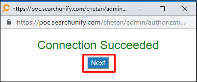 - If you are already logged into Salesforce in another tab, you will be greeted by a "Connection Succeeded" message. Click next.