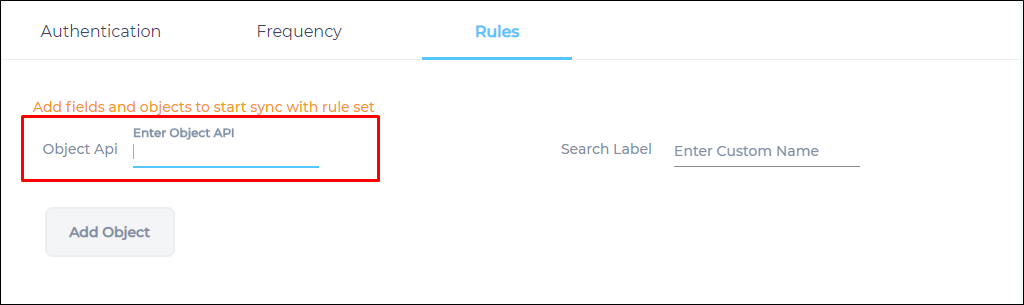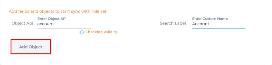 - After entering a valid API name, enter a label and click Add Object. If you cannot add an object, then verify the object name. Misspelled and downright wrong object names throw an error. Users cannot add objects in three other scenarios: (a) when they don't have access to in Salesforce, (b) when the credentials used to authenticate their org in SearchUnify have expired, and (c) when SearchUnify APIs are down.