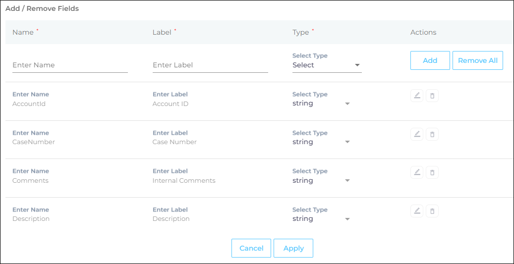- Add properties—such as createdDate and accountDescription—one at a time. You can change a property's label and type. It's important to note here than when a crawled field is deleted from Salesforce, then crawling cannot take place. Each time SearchUnify tries to update the index, an error shows up. If you haven't been able to crawl Salesforce for some time, then tally the indexed fields of each object in SearchUnify with the fields in your Salesforce org.