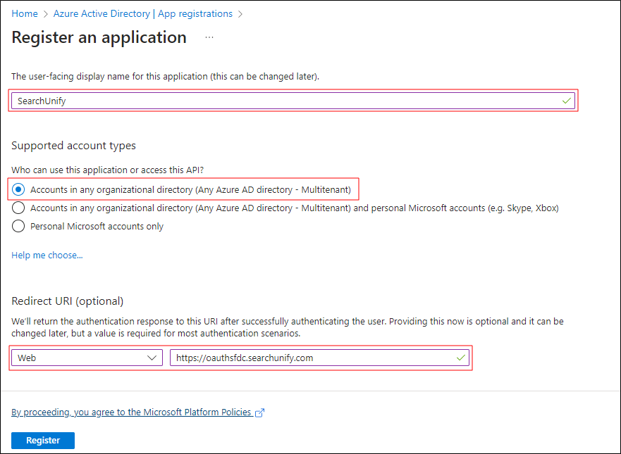 NOTE. You will not be able to add https://oauthsfdc.searchunify.com if it's already a Redirect URI in the select application.