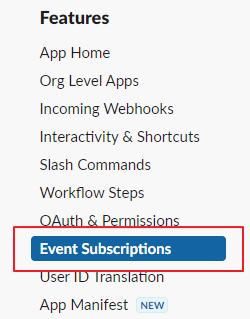 Open the newly-created app and click on Event Subscription in Features from the left-side menu.