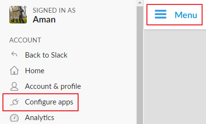 Expand Menu by clicking it. Among the options, click Configure Apps to open Installed Apps in a new tab.