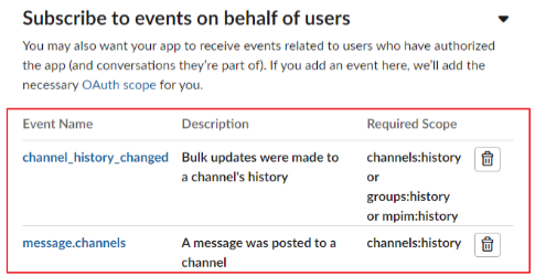 Click Add Workspace Event and add channel_history_changed and message_channels as events to be synchronized.