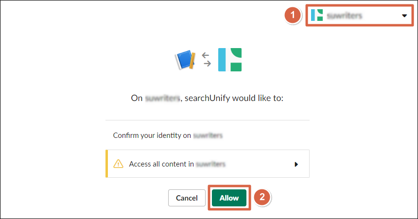 - In the window that has popped up, select a workspace and click Allow. Only the messages, links, and attachments in the selected workspace will be indexed.