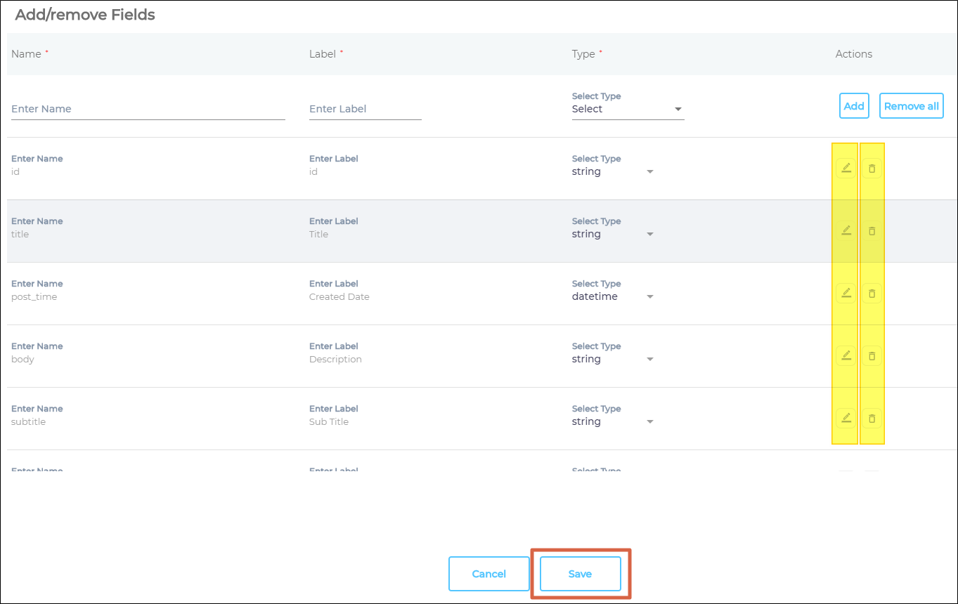 Now, choose either "All" or a specific content source field from the "Enter Name" dropdown. When "All" is selected, any value in the "Find" column is replaced with the corresponding value in the "Replace" column across all content source fields. If a particular field is chosen, the old value is replaced with the new value solely within the selected field.