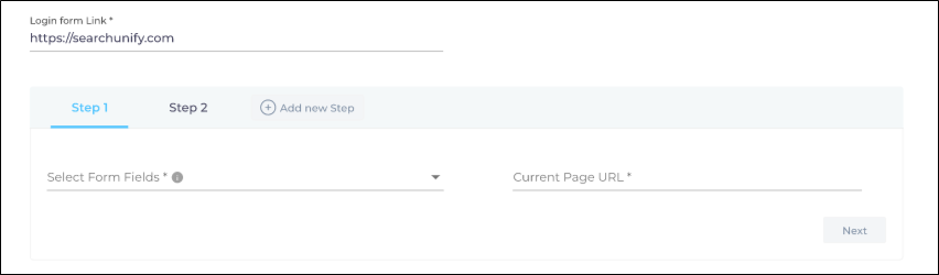 A Multi-Step Form allows you to crawl websites where two or more successful logins are required. You can enter the credentials needed to log in at each stage in the Multi-Step Form.