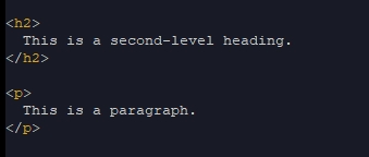Consider the next image where a pair of <h2> tags tells the browser to interpret the text contained within them as a second-level and a pair <p> tags tells the browser to interpret the text contained within them as a paragraph. Both are CSS selectors.