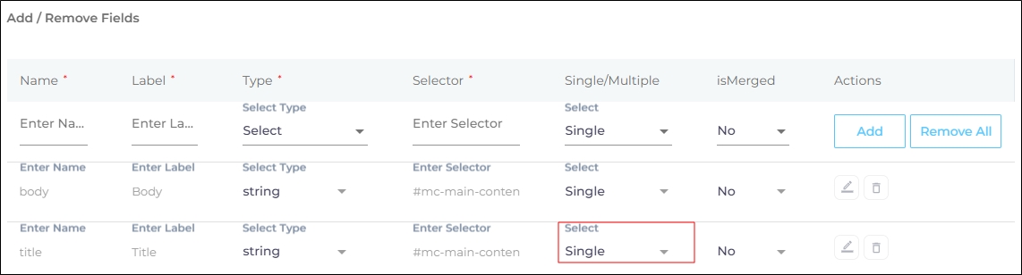 An HTML element can occur once or several times on a webpage. In almost all cases, the title is found only once. At the same time, a page usually has multiple paragraphs surrounded by p tags. Single/Multiple is for those elements that occur more than once, such as p, h2, and i. When Single is selected, then the data stored in multiple HTML elements is collated. Think of a five-paragraph where. If you pick Single, then all the five paragraphs are collated as they should be. But if you pick Multiple, then each paragraph is stored separately. Multiple can be selected in those scenarios when a web page lists items. For example, a list of books where each title is surrounded by the same pair of i tags. In that case, Multiple is the way to go.