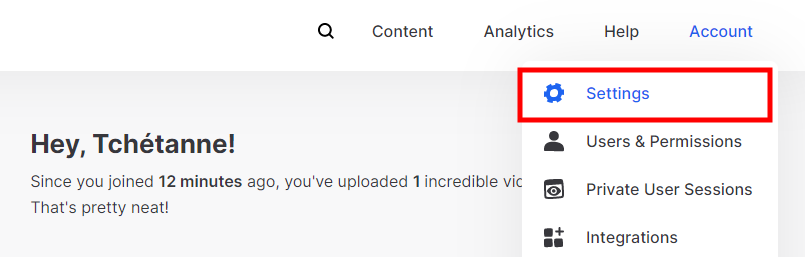 . Log into your Wistia instance. Navigate to Account and click Settings.
