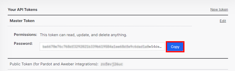 Copy the API key from the Password field.